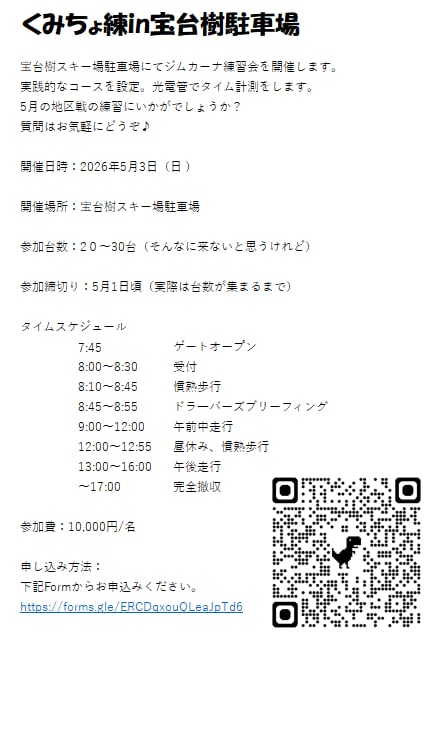 ●”くみちょ”ジムカーナ練習会・宝台樹スキー場駐車場